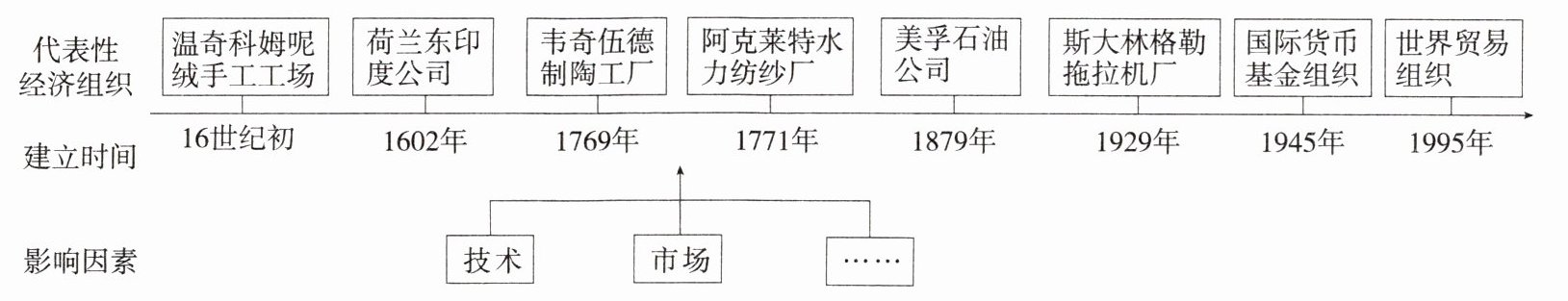 围绕“经济组织何以形成"这一主题,从图中任选一代表性经济组织及一种或多种影响因素(可补充其他因素),自拟论题,并结合世界史知识进行阐述。(要求:①论题须包含所选经济组织名称、影响因素;②阐述时,所举史实须与所选经济组织密切相关;③紧扣主题,持论有据,论证充分,逻辑清晰。)
