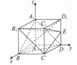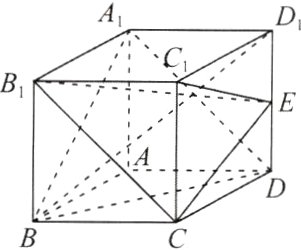 9.AB【解析】如图,建立空间直角坐标系,则$A(0,0,0),B(1,0,0),C(1,1,0),D(0,1,0),A_1(0,0,1),B_1(1,0,1),C_1(1,1,1),D_1(0,1,1),E(0,1,\frac{1}{2})$,所以$\overrightarrow{B_1C}=(0,1,-1),\overrightarrow{BD_1}=(-1,1,1),\overrightarrow{BD}=(-1,1,0),\overrightarrow{BA_1}=(-1,0,1)$.