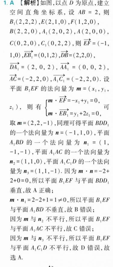 1.[全国乙理2022·7,5分]在正方体ABCD - A₁B₁C₁D₁中,E,F分别为AB,BC的中点,则 ( )