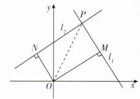 7. D 【解析】将直线l₁的方程变形得x - 1 + m(2 - y)=0,由$\begin{cases}x - 1 = 0\\2 - y = 0\end{cases}$,得$\begin{cases}x = 1\\y = 2\end{cases}$,则直线l₁过定点(1,2),同理可知,直线l₂过定点(1,2),所以直线l₁和直线l₂的交点P的坐标为(1,2),由1×m+( - m)×1 = 0可知直线l₁⊥l₂,连接OP.