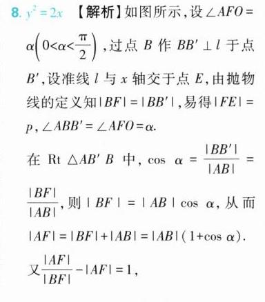 8. 已知抛物线$C:y^{2}=2px(p>0)$的焦点为$F$,准线为$l$. 若位于$x$轴上方的动点$A$在准线$l$上,线段$AF$与抛物线$C$相交于点$B$,且$\frac{|AF|}{|BF|}-|AF| = 1$,则抛物线$C$的标准方程为________.