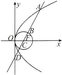 A 【解析】由题意知点$F(1,0)$既是圆$F$的圆心又是抛物线的焦点.
