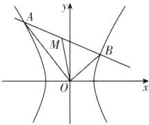 【二级结论】如图,已知直线$l$与双曲线相交于$A$,$B$两点,点$M$为$AB$的中点,$O$为原点,则$k_{OM}\cdot k_{AB}=\frac{b^{2}}{a^{2}}=e^{2}-1$.