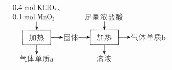 【思路导引】$KClO_3$在$MnO_2$催化作用下分解生成氧气,即a为氧气;固体混合物可能是$MnO_2$和$KCl$或是$MnO_2$、$KCl$和$KClO_3$;加入浓盐酸后$Cl^-$与$MnO_2$反应,生成的单质b为氯气。