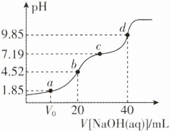 c(H')+c(Na'),两者结合可知所对应的溶液中的粒子浓度满足3c(A².)+c(OH)=c(H+)+c(Na²),B正确;当加入NaOH溶液的体积为20mL时,溶液中溶质为NaHA,其中HA的电离常数为K=10−⁷:¹⁹,水解常数K2=$\frac{K.}{K}$=$\frac{10}{10−1.85}$<10−7¹⁹,即HA的电离程度大于其水解程度,即c(A²)>c(HA),C正确;a点溶液中溶质为HA和NaHA,pH=pK=1.85,则c(HA−)=c(HA),若恰好是10mLNa0H溶液,不考虑弱电解质的电离和盐类的水解,