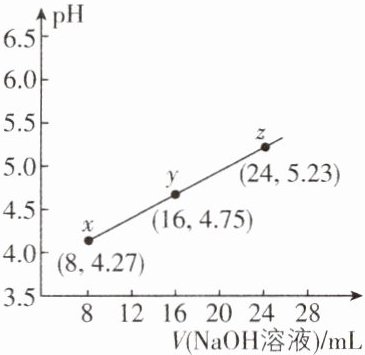 c(OH)+c(R−),元素守恒;4c(Na+)=c(R−)+c(HR),联立二式得3c(Na²)+c(OH)=c(H')+c(HR),B正确;加入16mLNaOH 溶液后,y点溶液中$\frac{n(HR)}{n(NaR)}$=11,溶液显酸性,说明HR的电离程度大于R的水解程度,则有c(R.)>c(Na)>c(HR)>c(H+)>c(OH),C正确;缓冲溶液中含有能结合H+或者OH的微粒,在识点NaR和HR缓冲溶液中加入少量酸或碱,体系pH不会出现较大幅度的变化,D正确。