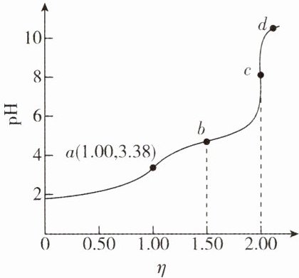 3. [湖南 2023·12,3 分]常温下,用浓度为$0.020\ mol\cdot L^{-1}$的$NaOH$标准溶液滴定浓度均为$0.020\ mol\cdot L^{-1}$的$HCl$和$CH_{3}COOH$的混合溶液,滴定过程中溶液的$pH$随$\eta[\eta=\frac{V(标准溶液)}{V(待测溶液)}]$的变化曲线如图所示。下列说法错误的是( )