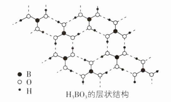 (6)常温常压下,硼酸(H₃BO₃)晶体结构为层状,其二维平面结构如图所示: