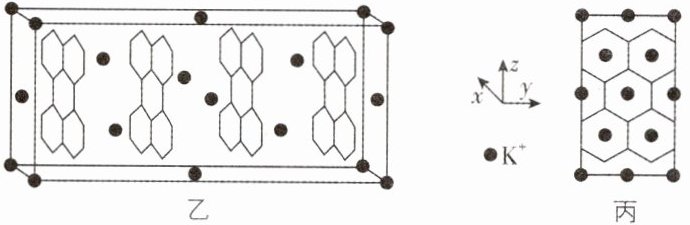 (2) 石墨与金属钾反应生成石墨的钾插层化合物KCₓ:K+xC === KCₓ,KCₓ晶胞结构如图乙(碳原子省略),图丙是晶胞沿y轴方向的投影。