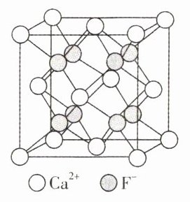 3. [重庆七校2024联考]萤石是制作光学玻璃的原料之一,其主要成分氟化钙的晶胞结构如图所示。已知:原子中电子有两种相反的自旋状态,可用自旋量子数表示,一种为+$\frac{1}{2}$,另一种为-$\frac{1}{2}$。下列说法错误的是 ( )