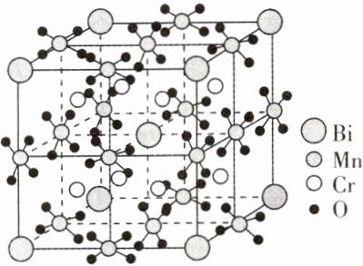 【解析】Bi原子在体心和顶点,个数为$1 + 8\times\frac{1}{8}=2$,Mn原子在面心和棱上,个数为$12\times\frac{1}{4}+6\times\frac{1}{2}=6$,Cr原子都在晶胞内部,个数为8,每个Mn原子周围有4个O原子,故氧原子的个数为24,该晶体的化学式为$BiMn_3Cr_4O_{12}$,A正确;每个晶胞分成八个小正方体,Cr原子在每个小正方体的体心,故Cr原子之间的最短距离为晶胞棱长的$\frac{1}{2}$,即$\frac{1}{2}a$,B错误;该晶胞中,以体心Bi原子为例,与其距离最近且相等的Mn原子在6个面心上,所围成的空间构型为正八面体形,C正确;基态$Cr^+$价层电子排布式为$3d^5$,基态$Mn^+$价层电子排布式为$3d^54s^1$,基态$Cr^+3d$能级处于半充满状态,比较稳定,故其第二电离能较大,D正确。
