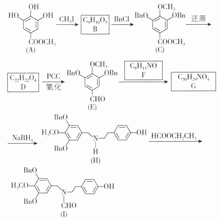 (5) HCOOCH₂CH₃分子中的—CHO取代了H的亚氨基中的氢得到I,故反应类型为取代反应。