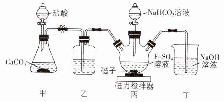 C. 装置丙中发生反应的离子方程式:Fe²⁺ + 2HCO₃⁻$=\!=\!=)$FeCO₃↓+CO₂↑+H₂O
