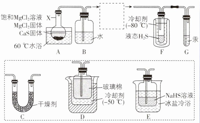 (5) 为防止H₂S和装置G中的汞挥发造成危害,该实验须在通风橱内进行,A正确;为了使H₂S充分冷却液化,用装置D进行预冷却,B正确;MgCl₂是制备H₂S反应中的反应物,为避免反应过程中消耗MgCl₂使其浓度降低,反应产生H₂S的速率不稳定,应加入过量的MgCl₂固体使MgCl₂溶液保持饱和,C正确;若使用硝酸吸收H₂S尾气,会产生氮氧化物造成环境污染,D错误。
