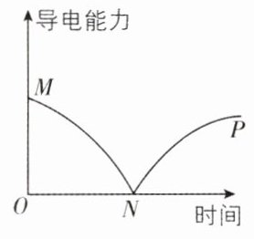 (4)N点溶液的导电能力几乎为0,说明此时$Ba(OH)_{2}$溶液与稀硫酸恰好完全反应,溶液中的离子浓度降到最低,a正确;MN段溶液的导电能力减弱,说明生成的$BaSO_{4}$难溶于水,在水中自由移动的离子减少,但溶解的$BaSO_{4}$完全电离出自由移动的离子,属于强电解质,b错误;向一定体积的$Ba(OH)_{2}$溶液中滴加稀硫酸,恰好完全反应时的离子方程式为$Ba^{2+}+2OH^{-}+2H^{+}+SO_{4}^{2-}=BaSO_{4}\downarrow +2H_{2}O$,c正确;NP段溶液的导电能力增强,主要是由于过量的$H_{2}SO_{4}$电离出的离子导电,d错误;故选ac。