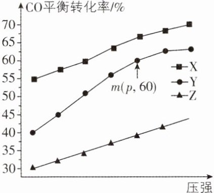 A. 曲线 Z 代表起始投料比为$1:1$时 CO 平衡转化率随压强的变化曲线