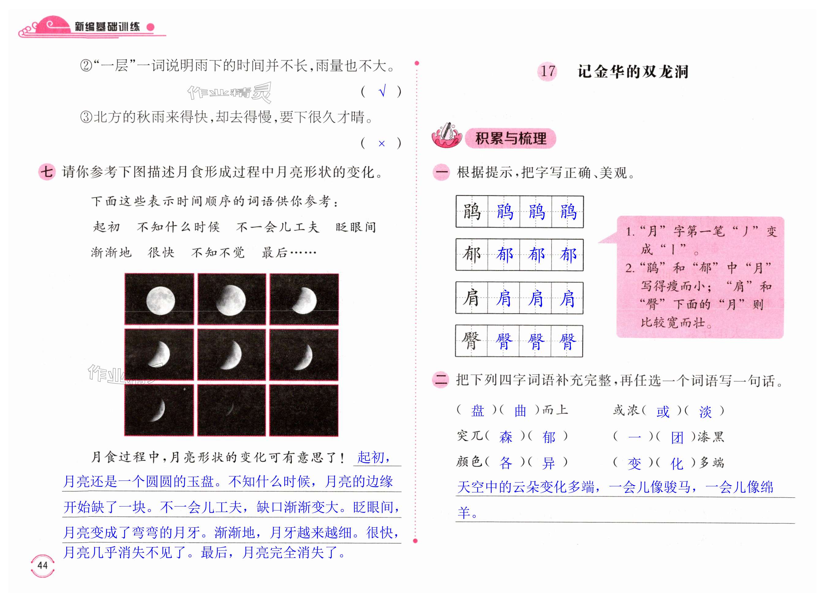 注:目前有些书本章节名称可能整理的还不是很完善,但都是按照顺序排列的,请同学们按照顺序仔细查找。练习册 2025年新编基础训练四年级语文下册人教版 答案主要是用来给同学们做完题方便对答案用的,请勿直接抄袭。