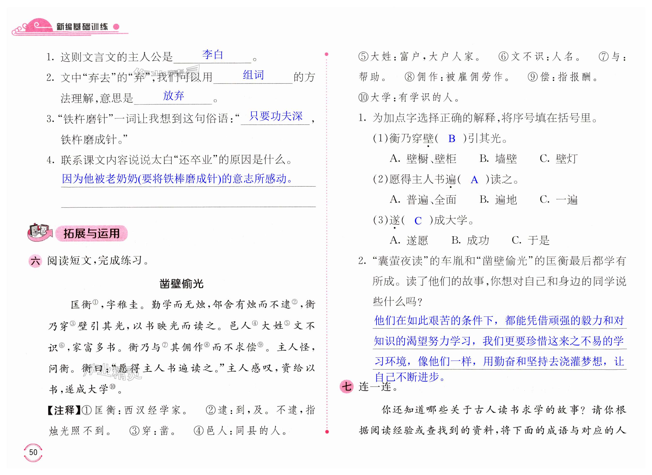 注:目前有些书本章节名称可能整理的还不是很完善,但都是按照顺序排列的,请同学们按照顺序仔细查找。练习册 2025年新编基础训练四年级语文下册人教版 答案主要是用来给同学们做完题方便对答案用的,请勿直接抄袭。