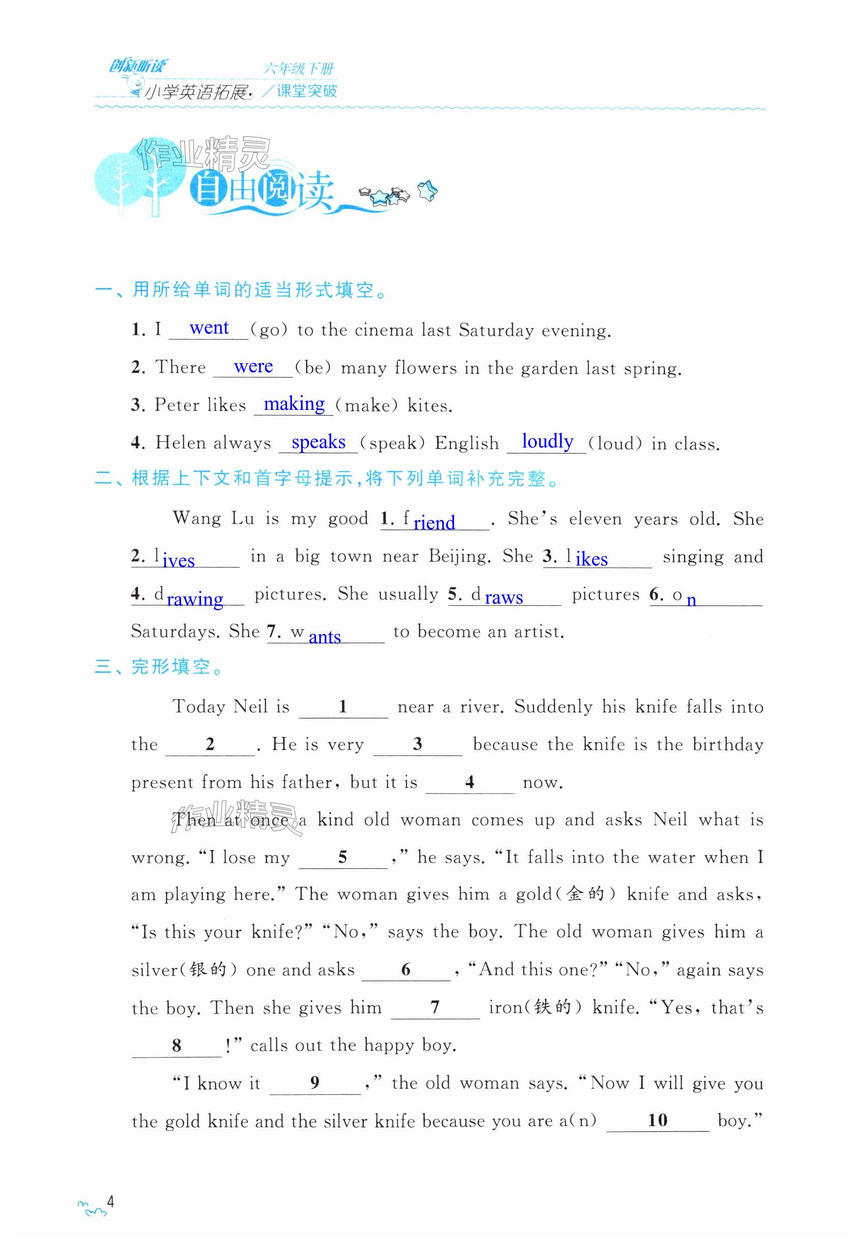 注:目前有些书本章节名称可能整理的还不是很完善,但都是按照顺序排列的,请同学们按照顺序仔细查找。练习册 2025年小学拓展课堂突破六年级英语下册译林版 答案主要是用来给同学们做完题方便对答案用的,请勿直接抄袭。