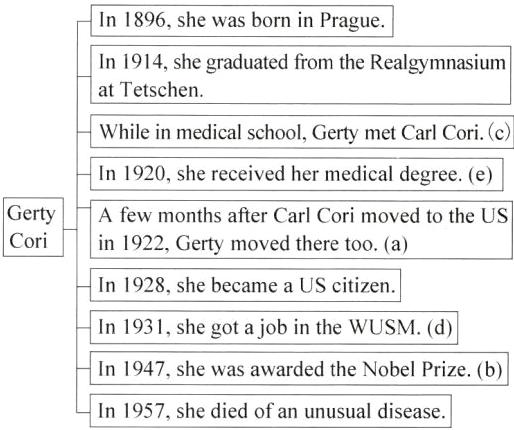 2. B 细节理解题。文章以时间顺序讲述了女科学家格蒂·科里的人生经历: