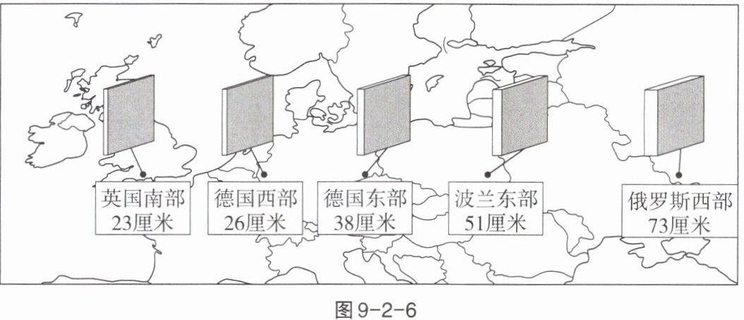 读图 9 - 2 - 6“欧洲不同地区传统民居墙壁厚度变化示意图”,回答 13~14 题。