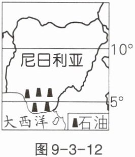 (2024·甘肃兰州)尼日利亚是非洲人口最多的国家,自然资源丰富,经济基础较为薄弱。读图 9 - 3 - 12“尼日利亚位置简图”,完成 4 ~ 5 题。