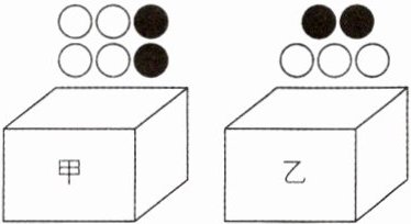 7. 某数学素养提升小组设计了如下问题进行探究:现有完全相同的甲,乙两个箱子(如图),其中甲箱装有2个黑球和4个白球,乙箱装有2个黑球和3个白球,这些球除颜色外完全相同. 某人先从两个箱子中任取一个箱子,再从中随机摸出一球.