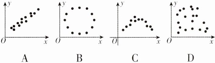 A [解析]由散点图可知,A选项中的散点均匀地分布在一条直线附近,则变量x,y具有线性相关关系,B,C,D选项中的散点没有分布在一条直线附近,故B,C,D选项中变量x,y不具有线性相关关系.故选A.