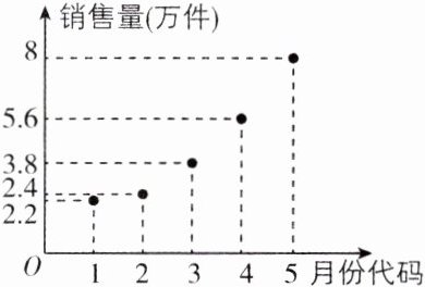 9. [吉林长春外国语2024高二期中]随着移动互联网和直播带货技术的发展,直播带货已经成为一种热门的销售方式,特别是商家通过展示产品,使顾客对商品有更全面的了解. 下面统计了某新手开启直播带货后从6月份到10月份每个月的销售量$y_{i}$(万件)($i = 1,2,3,4,5$)的数据,得到如图所示的散点图. 其中6月份至10月份相应的代码为$x_{i}(i = 1,2,3,4,5)$,如$x_{1}=1$表示6月份.