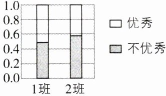 2. [河北张家口2024高二期末]如图是某学校高二1,2班某次考试数学成绩优秀率的等高堆积条形图,如果再从两个班中各随机抽6名学生本次考试的数学成绩进行统计,那么( )