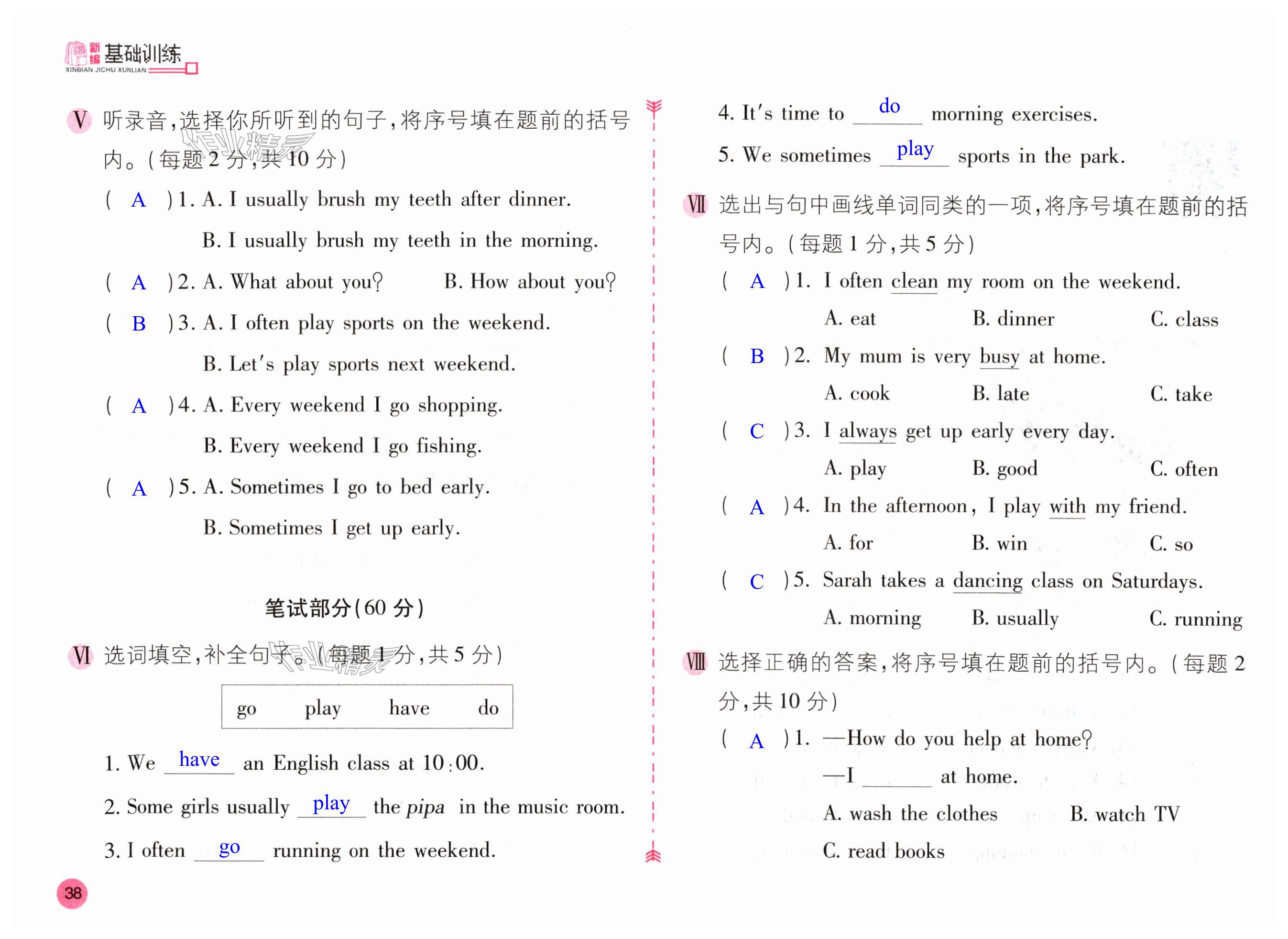 相关练习册答案
