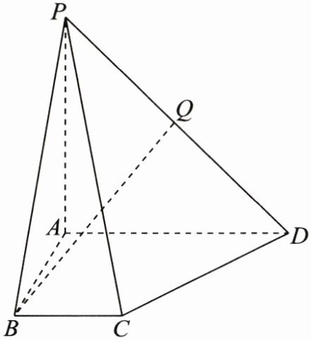 12. 在四棱锥$P - ABCD$中,$PA\perp$平面$ABCD$,底面四边形$ABCD$为直角梯形,$AD// BC$,$AD\perp AB$,$PA = AD = 2,AB = BC = 1$,$Q$为$PD$的中点.