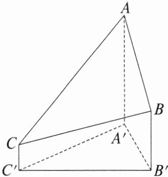 4. (2021·全国甲,理 8)2020 年 12 月 8 日,中国和尼泊尔联合公布珠穆朗玛峰最新高程为 8 848.86(单位:m),三角高程测量法是珠峰高程测量方法之一. 如图是三角高程测量法的一个示意图,现有$A$,$B$,$C$三点,且$A$,$B$,$C$在同一水平面上的投影$A'$,$B'$,$C'$满足$\angle A'C'B' = 45^{\circ}$,$\angle A'B'C' = 60^{\circ}$. 由$C$点测得$B$点的仰角为$15^{\circ}$,$BB'$与$CC'$的差为 100;由$B$点测得$A$点的仰角为$45^{\circ}$,则$A$,$C$两点到水平面$A'B'C'$的高度差$AA' - CC'$约为($\sqrt{3}\approx1.732$)(