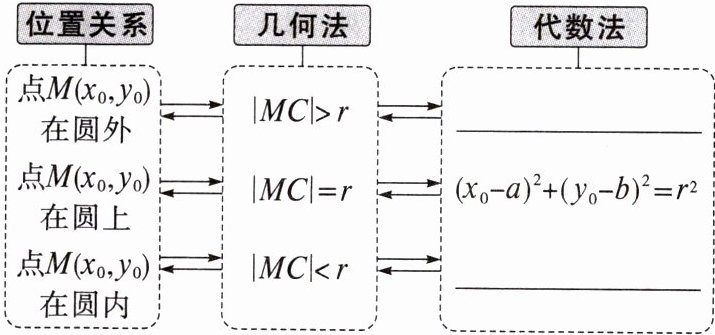 为半径的圆微点拨:方程$x^2 + y^2 + Dx + Ey + F = 0$,当$D^2 + E^2 - 4F > 0$时,表示圆心为$(-\frac{D}{2}, -\frac{E}{2})$,半径$r = \frac{\sqrt{D^2 + E^2 - 4F}}{2}$的圆;当$D^2 + E^2 - 4F = 0$时,表示一个点$(-\frac{D}{2}, -\frac{E}{2})$;当$D^2 + E^2 - 4F < 0$时,不表示任何图形.