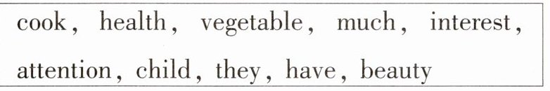 1. cooking 2. their 3. interesting 4. children 5. have 6. most 7. attention 8. vegetables 9. beautiful 10. healthy