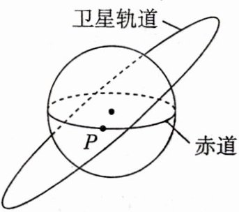 8.[不在同一轨道平面的“相遇”/2023 重庆/多选]某卫星绕地心的运动视为匀速圆周运动,其周期为地球自转周期$T$的$\frac{3}{10}$,运行的轨道与地球赤道不共面,如图所示. $t_0$时刻,卫星恰好经过地球赤道上$P$点正上方. 地球的质量为$M$,半径为$R$,引力常量为$G$. 则 ( )