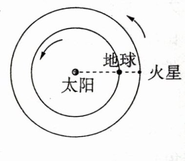 7.[相距最近或最远分析/2023 湖北]2022 年 12 月 8 日,地球恰好运行到火星和太阳之间,且三者几乎排成一条直线,此现象被称为“火星冲日”. 火星和地球几乎在同一平面内沿同一方向绕太阳做圆周运动,火星与地球的公转轨道半径之比约为 3:2,如图所示. 根据以上信息可以得出 ( )