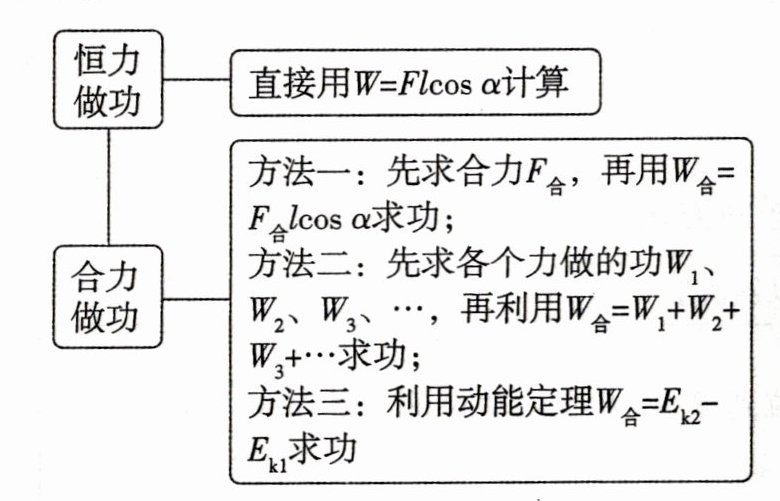 1. 2000 -500 0 0 1500 解析:拉力在水平方向的分力为$F_x = F\cos37^{\circ}$,它所做的功为$W_1 = F_xl = Fl\cos37^{\circ}=500×5×0.8\ J = 2000\ J$,阻力与运动方向相反,两者夹角为$180^{\circ}$,它所做的功为$W_2 = F_{阻}l\cos180^{\circ}=-100×5\ J = - 500\ J$,重力和支持力与运动方向垂直,即重力和支持力对雪橇做的功为0,各力对雪橇所做的总功为$W = W_1 + W_2 = 2000\ J - 500\ J = 1500\ J$。