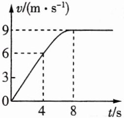 (1)由题图可知小车的最大速度$v_{max}=9\ m/s$ 由公式$P = Fv_{max}$,$F = f$,得$P = 54\ W$。