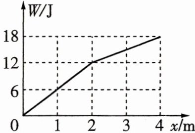 3.[$W - x$图像/2023 新课标/多选]一质量为$1\ kg$的物体在水平拉力的作用下,由静止开始在水平地面上沿$x$轴运动,出发点为$x$轴零点,拉力做的功$W$与物体坐标$x$的关系如图所示. 物体与水平地面间的动摩擦因数为$0.4$,重力加速度大小取$10\ m/s^{2}$. 下列说法正确的是 ( )