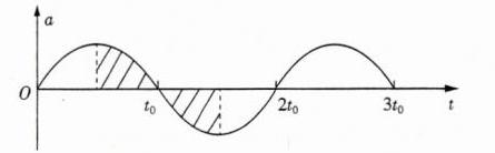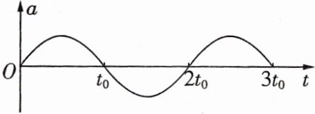 4.[$a - t$图像/2023 湖北/多选]$t = 0$时刻,质点$P$从原点由静止开始做直线运动,其加速度$a$随时间$t$按图示的正弦曲线变化,周期为$2t_0$。在$0 ~ 3t_0$时间内,下列说法正确的是 ( )
