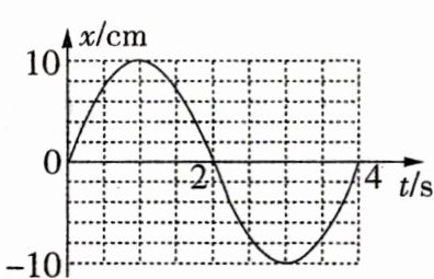 2. 10 cm 4 s 0.5π rad/s $x = 10\sin(0.5\pi t)$ cm $\frac{1}{3}$ s