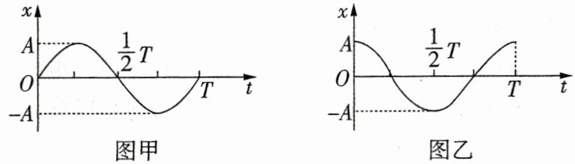 ①从[25]______开始计时,把开始运动的方向规定为正方向,振动表达式为$x = A\sin\omega t$,图像如图甲所示.