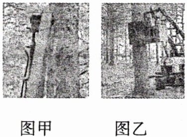 10.[2021浙江1月/多选]为了提高松树上松果的采摘率和工作效率,工程技术人员利用松果的惯性发明了用打击杆、振动器使松果落下的两种装置,如图甲、乙所示,则 ( )