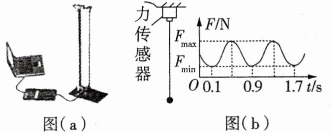 (1)图(a)是用力传感器对单摆运动过程进行测量的装置图,图(b)是与力传感器连接的计算机屏幕所显示的$F - t$图像,根据图(b)的信息可得,从$t = 0$时刻开始摆球第一次摆到最低点的时刻为______s,摆长为______m(取$\pi^{2}=10$,重力加速度大小$g = 10$m/s²).