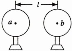 3 将两个质量均为$m$、壳层的厚度和质量分布均匀的完全相同的金属球壳$a$和$b$,分别固定于两个绝缘支架上,两球壳球心间的距离$l$是球壳半径$r$的$3$倍. 若使它们带上等量异种电荷,且其电荷量的绝对值均为$Q$,那么