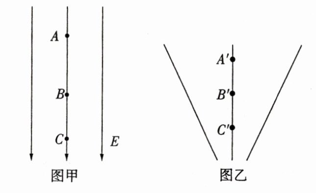 3 图甲中是匀强电场,其中$AB$与$BC$等距,图乙中是负点电荷电场,其中$A'B'$与$B'C'$等距.