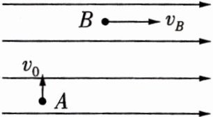 9.[电场和重力场叠加下的偏转]如图所示,在真空中,将一个质量为$m$、带电荷量为$+q$的粒子从$A$点以初速度$v_{0}$竖直向上射入水平向右的匀强电场中,粒子通过电场中$B$点时,速率$v_{B} = 2v_{0}$,方向与电场的方向一致,则$A$、$B$两点的电势差为 ( )
