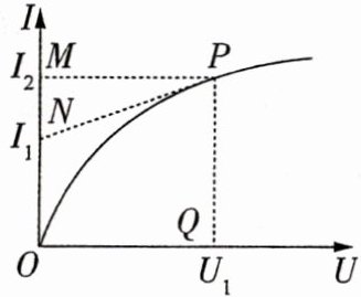 3.[非线性元件的$I - U$图像]小灯泡通电后其电流$I$随所加电压$U$变化的图线如图所示,$P$为图线上的一点,$PN$为图线在$P$点的切线,$PQ$为$U$轴的垂线,$PM$为$I$轴的垂线,则下列说法错误的是 ( )
