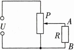 8.[混联电路的分析与计算/2024 安徽合肥一中]如图所示是将滑动变阻器当作分压器用的电路图,$A$、$B$为分压器的输出端,$R$是电阻,输入电压$U$保持恒定. 如果滑片$P$位于滑动变阻器的正中间,下列说法正确的是 ( )
